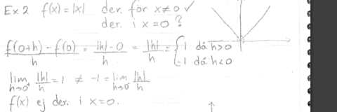 | visa att absolutbelopp x ej är deriverbart i x=0 | |
