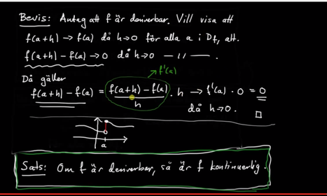 | sats: om f är deriverbar så är f. kontinuerlig bevisa | |