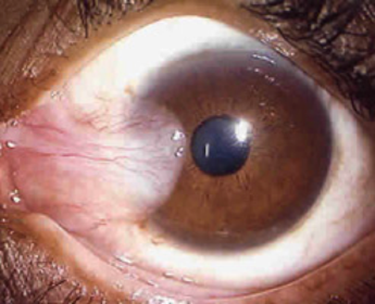 | Pterygium | A triangular thickening of the bulbar conjunctiva that grows slowly across the outer surface of the cornea (usually from the nasal side) |