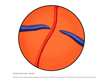 | A-V tapering | The vein appears to taper down on either side of the artery. |