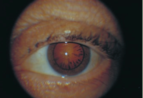 | Arcus senilis | Ring around the iris. Common in elderly, From cholesterol deposits, may indicate hyperlipidemia. |