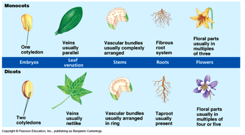 | Monocot vs dicot usage of endosperm | Monocot stores most food in endosperm, dicot restocks nutrients into developing cotyledons |