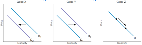 Refer to the diagrams above. Identify the two goods which are substitutes. Good X and Good Z.