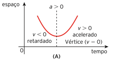 | Gráfico ( s X t ) - A > 0 | Concavidade voltada para cima. |