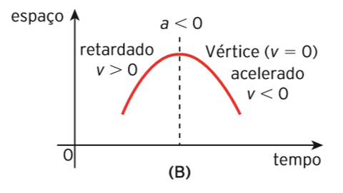| Gráfico ( s X t ) - A < 0 | Concavidade voltada para baixo. |