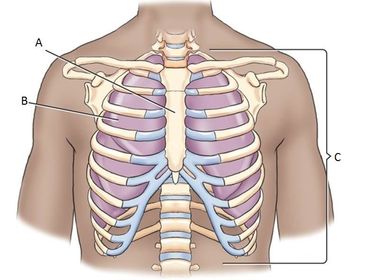 | A. sternum B. lung C. 12 pairs of ribs | |