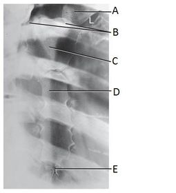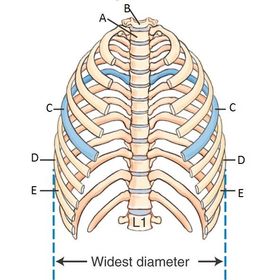 | A. T1 B. C7 C. 5th rib D. 8th rib E. 9th rib | |