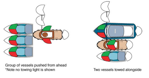 | A power-driven vessel when pushing ahead or towing alongside, except in the case of a composite unit, sh | |