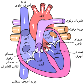 | عضو عضلي مجوف يدفع الدم ضمن جهاز الدوران بما يشبه عمل المضخة، مشكلا العضو الرئيسي في الجهاز القلبي الوعائي | القلب |