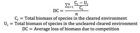 | Describe Keddy and Wilson's experiment. | They developed a way to measure diffuse competition. They cleared plots along a gradient and divided each plot into 2 areas. In the first area they cleared out everything and grew each plant species alone. In the 2nd area, the plants were grown naturally. They then developed an equation that allowed them to calculate the average loss of biomass due to competition. |