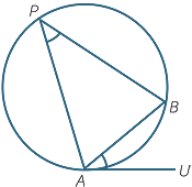 | The angle between a tangent and a chord is always equal to the angle in the opposite segment. |