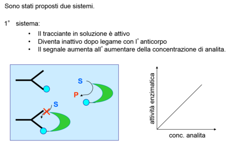 | What kind of markers are there?(5) | 1) un radioisotopo (radioimmunoassay, RIA) 2) un enzima (enzyme immunoassay, EIA) 3) un substrato enzimatico 4) un coenzima o un inibitore enzimatico 5) una molecola fluorescente o un quencher |