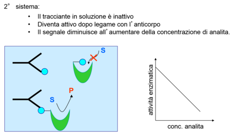 | What is the concept of EMIT? | EMIT = Enzyme-multiplied Immunoassay Technique Metodi EMIT sono stati sviluppati utilizzando traccianti enzimatici che, in seguito al legame con l’anticorpo, mostravano una variazione (aumento riduzione) della propria attività catalitica. I primi metodi EMIT sono stati sviluppati utilizzando l’enzima lisozima come tracciante, ma successivamente l’enzima glucosio-6-fosfato deidrogenasi NAD dipendente (G6PD) è stato ampiamente utilizzato, grazie alla sua maggior capacità di modulare la propria attività catalitica in seguito all’interazione con l’anticorpo. |