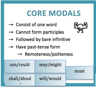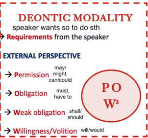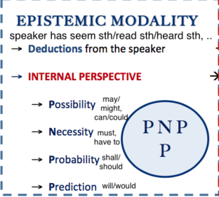 | Modality | = semantic concept; expresses certain MEANING modal sentences= sentences that do not represent situations as facts, but as possible, necessary, probable, etc. |