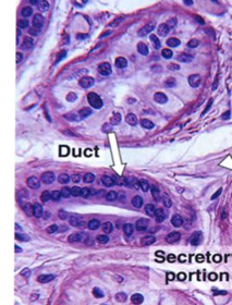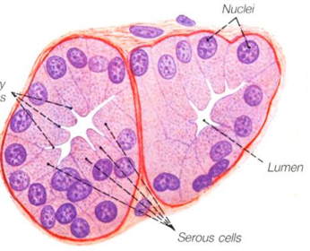 | What type of secretion does this cell have? | Serous - stained mostly dark purple/pink |