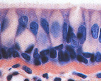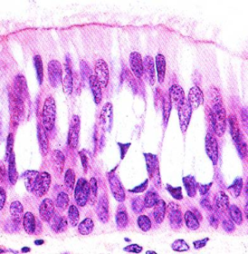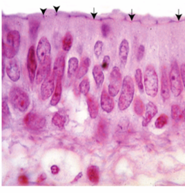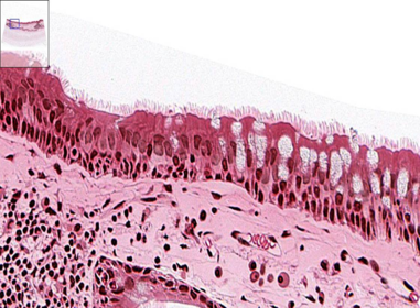 | ID the cell surface specialization. Id the tissue on the cell surface | Specialization - cilia Type: PCCE, with goblet cells |