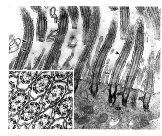 | When you look at this think "sperm" so then you know its in the epididymis, so it has to have stereocilia | |