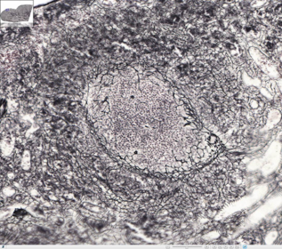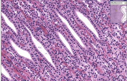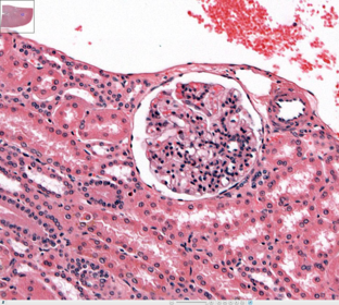| where is this located? Now describe it based on location. | Simple squamous epi lining the Bowman's Capsule of Kidney "Spaghetti and meatballs" |