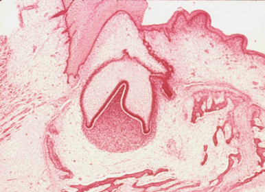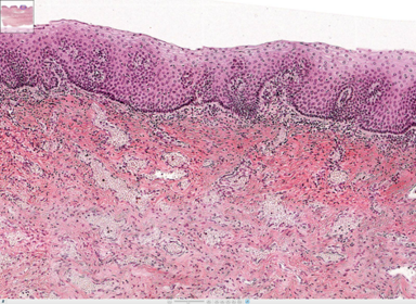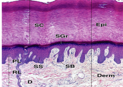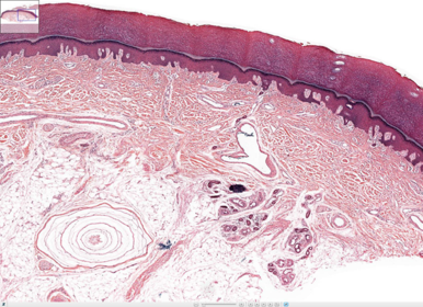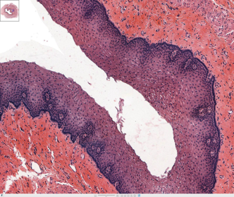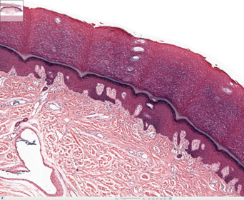 | ID the tissue on the surface | (many layers of flat cells) stratified squamous nonkeratinized |