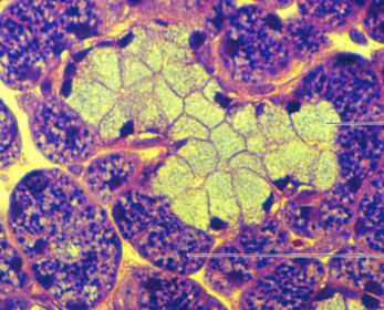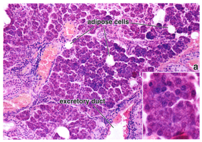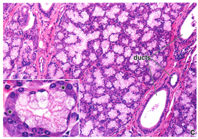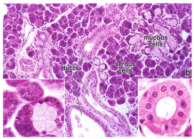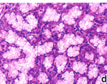 | Submandibular - S,m white: fat purple/pink: serous pale in between: mucus | |