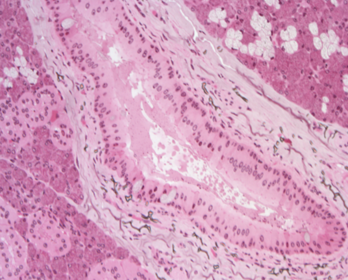 | what type of duct is this? | interlobular duct - on the outside, has striated columnar epi |