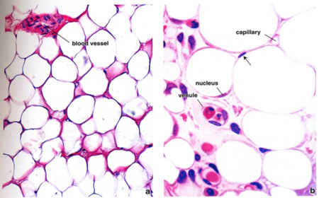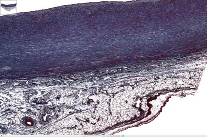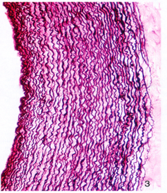 | dark wavy elastic fibers in the walls of the aorta. you can also see fat tissue | |