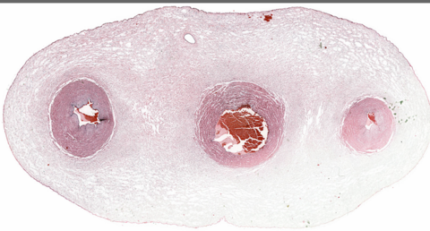 | Umbilical cord, mucoid tissue all around 2 umbilical arteries and one umbilical vein | |
