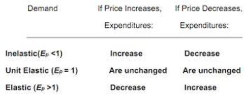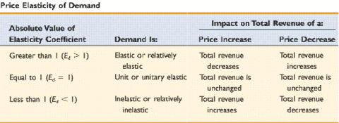 | Role of PED for firm decision making regarding price changes and their effect on total revenue |