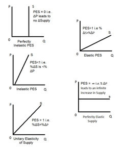 | PES of primary commodities vs. manufactured products | The PES for primary commodities is relatively low because a change in price cannot lead to a proportionately large increase in quantity supplied. The PES for manufactured products is relatively high because it is easier to increase or decrease quantity supplied in response to a change in price. |