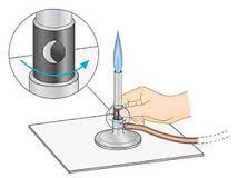 | how do you make a blue flame come out of a bunsen burner? | Let air go in the air hole. |