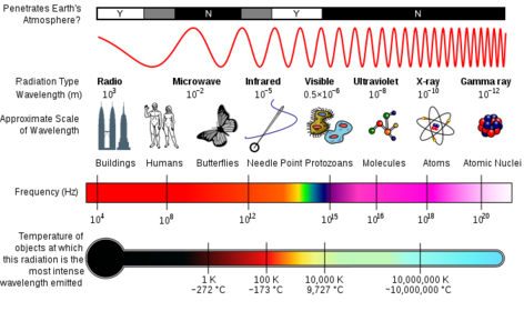 | Electromagnetic Spectrum continued . . . | Red, mockeys in vans using x-ray guns Radiowaves, microwaves, infrared, visable light, ultraviolt, x-rays, gamma |