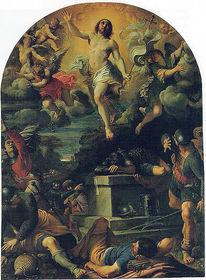 | Annibale Carracci, Resurrection of Christ, 1593, o/c, 85 x 63, Louvre, Paris * Diagonals everywhere * Dividing heaven and eartg * Vertical line of jesus’s leg * Jesus’s resurrection wasn’t in the bible but we know there were guards outside his tomb * Vertical lines are for stability * Diagonals are for movement | |