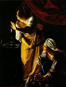 | Artemisia Gentileschi, Judith and her Handmaid with the Head of Holofernes, 1625, Detroit Institute of Arts * She was raped by Tassi, another student in her father’s studio * There was a big public hearing, her father didn’t even help her * Tassi got off without punishment * The blame went to Artemisia and the tortured her with thumbscrews * After the rape, she paints strong women who get back at men * She painted no less than 5 versions of Judith flaying Holofernes * Judith was a wealthy widow, Holofernes wanted her, he was going to take over Judith’s city * He invites her to his tent, falls asleep, and then beheads him and saves her people * The female model for Judith was used multiple times, Fellide * She was the Saint Catherine of Alexandria and the earring and her were in the Penitent Magdalene * She was the lover of the man Caravaggio killed * Judith is always a self portrait of Artemisia in all five * This is life sized, after the act * Candle as a source of light was popular around the time |