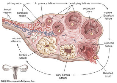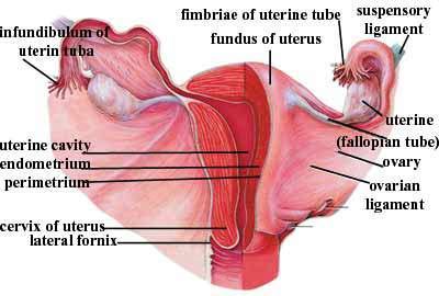 | OVARY: | The ovary is a ductless reproductive gland in which the female reproductive cells are produced. Females have a pair of ovaries, held by a membrane beside the uterus on each side of the lower abdomen. The ovary is needed in reproduction since it is responsible for producing the female reproductive cells, or ova |