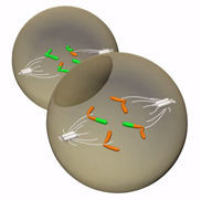 | What are the 2 distinct stages in meiosis? | 1: The nuclear membrance . 2: Spindle fibres. |