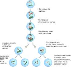 | Define meiosis? | Meiosis is a type of cell division that reduces the number of chromosomes in the parent cell by half and produces four gamete cells. This process is required to produce egg and sperm cells for sexual reproduction. |