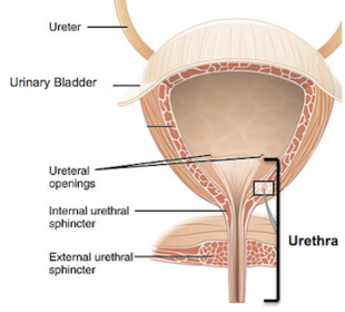 | Urethra: | the duct by which urine is conveyed out of the body from the bladder, and which in male vertebrates also conveys semen |