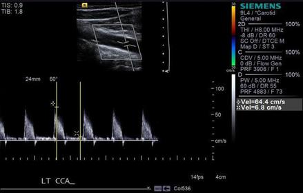 All of the following arteries produce a low resistance waveform EXCEPT: a. CCA b. renal artery c. hepatic artery in a fasting patient d. femoral artery d. femoral artery (high resistance = extremities, things you can live w/o)