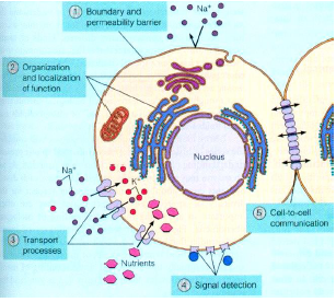 | Cell Plasma Membrane | phospholipid bilayer proteins present which give specific functions eg. channels- transmembrane, receptors-project primarily to the extracellular environment) |