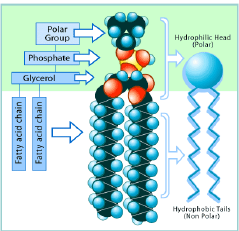 | Phospholipids | polar hydrophillic heads nonpolar hydrophobic tails (fatty acids) |