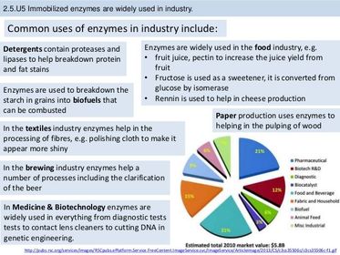 | Why do enzymes tend to move more slowly than substrates? | If not immobilised the enzyme can move too, however enzymes tend to be larger than the substrate(s) and therefore move more slowly Enzymes are bigger than the substrate(s) |