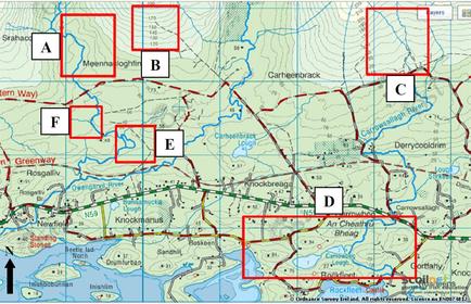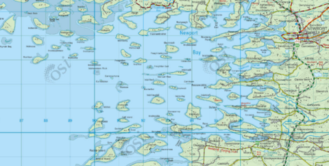| Drumlins Glacial Deposition Small hills dotting the land. Submerged in Clew Bay Spot height will show change in height. | |