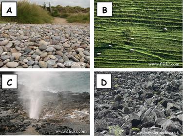 | A= Attrition B= Terracetes C= Blowhole D= Scree | |