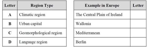 | Central plain = C Wallonia = D Mediterranean = A Berlin = B |