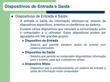| Os dispositivos de um computador podem ser classificados de acordo com a sua função em três tipos, quais são esses tipos? | |