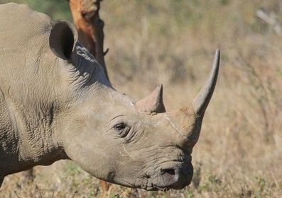 | Носорог Белый носорог имеет широкую морду и плоскую верхнюю губу. Окрас тела серый, морда вытянутая, а на затылке находится горб. У черного носорога верхняя губа цепкая, а окрас тела варьируется от темно-коричневого до темно-серого. Оба вида имеют два рога и передний всегда длиннее. | |