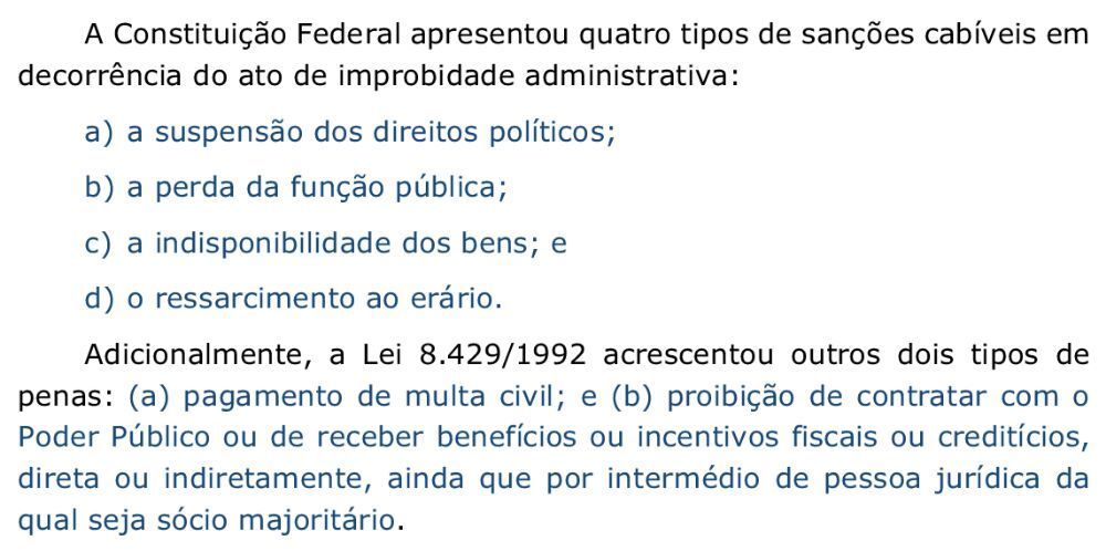 | Quais as sanções cabíveis em decorrencia dos atos de improbidade administrativa? |