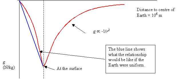 | graph of gravitational field strength vs distance for earth | |