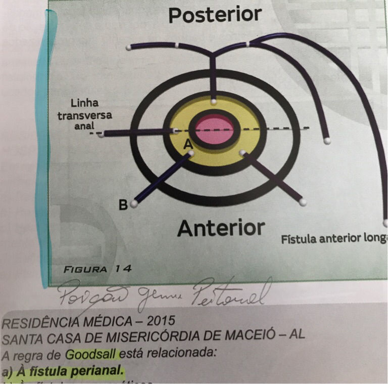 | A regra de Goodsall-salmon é... | Relacionado a fístula anal Com um trajeto provavelmente da fístula. |