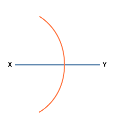 | Put your compass on X and set it to be over half way along the line. Draw an arc | Without adjusting your compass put it on Y and draw anther arc |